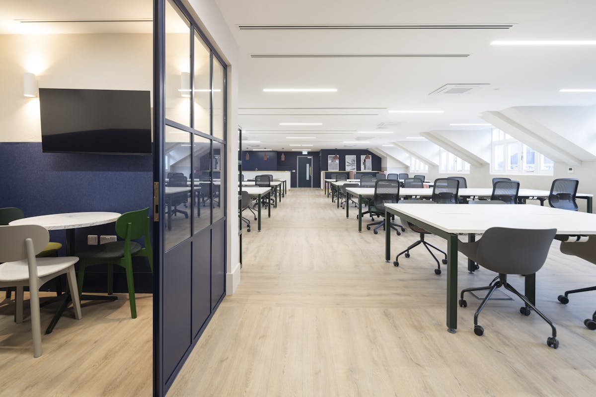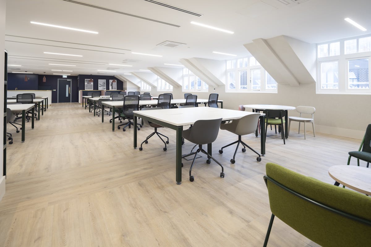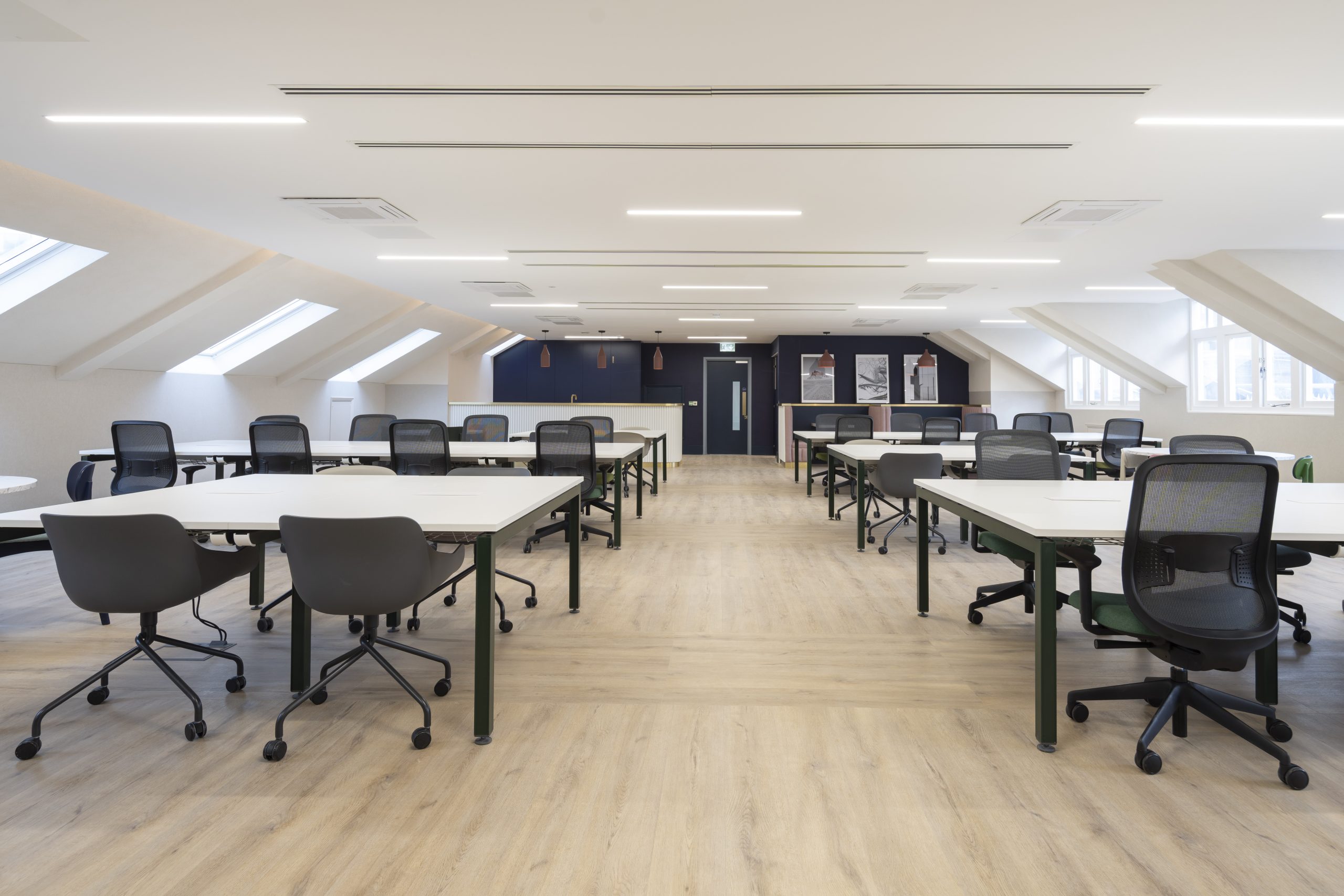 The 2nd floor offers 3,113 sq ft of contemporary office space providing 32 open plan desks. The floor also benefits from multiple meeting rooms and a kitchenette.